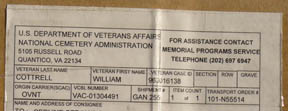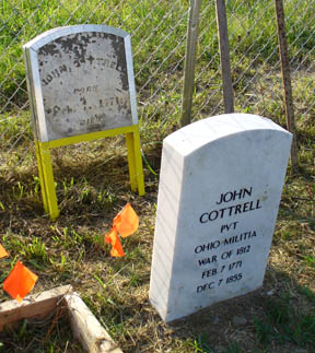 Larry and Herb are shown in the picture above carefully aligning William Cottrell's stone with those of Thomas and Samuel. The VA replacement stone in the background is that for John Cottrell.