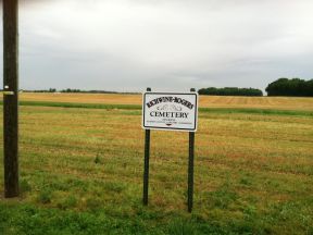 memorial sign reading "Roger-Richwine Cemetery, Destroyed" could be placed by