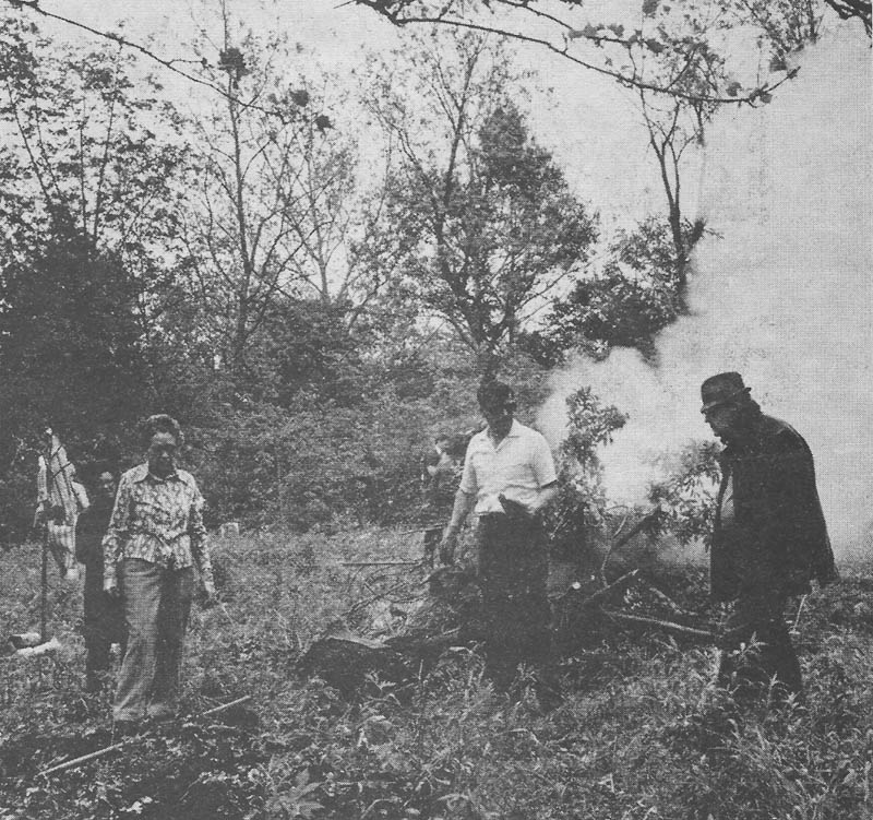 As explained on the pioneer history page, old city and some family and church cemeteries were taken over later in the 19th century as part of associations whose business was burying the dead. The old pioneer sections were then maintained and preserved as part of a larger sacred park. However, many pioneer cemeteries were not that lucky. Included in land still controlled by private individuals in the 20th century, the Cottrell, Norris, Pennisten, and Hardy-Culp were destroyed or vandalized for profit or convenience. They are examples of the cemetery desecration which gave rise to public outcry and the passing of Indiana state laws in 1973 protecting pioneer burial grounds. Even before the '73 legislation, the Madison County Historical Society had established a Cemetery Conditions Committee in the mid 1960s. The committee had taken a pro-active approach to the dilapidated state of county pioneer cemeteries and had already improved the Capp-Tucker, Kisling, Mt. Carmel, Melson, Duck Creek, and Keesling. Workers on this committee were W. Lloyd Scott, Mrs. Everett Huntzinger, Mr. and Mrs. Durbin Hollingsworth, Loree Cross, Howard Clark, Martha Haines, Mrs. Glen Tyson, Elizabeth Worland, Frank Rogers, Mr. and Mrs. Harris Coy, Helen Baumer, Mr. and Mrs. Charles Dittlinger, Adeile Cunningham, Claire Mowrey, David Hayward et. al.