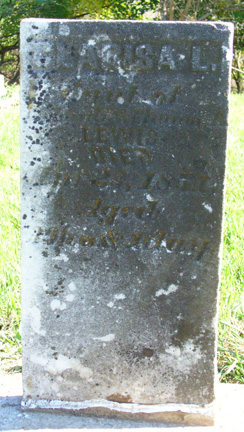 Several of the rediscovered stones will take chalking or paper rubbings in order to bring out their data. At far left, may be an Abigail, middle left seems to be a Clarisa L. Lewis, and at middle right a Martha. A Retherford marker at far right shows its repaired column above the legible base.