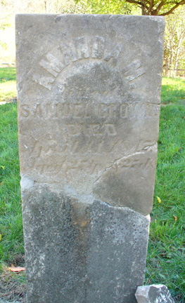 At far left, William Nelsom--?, has a large tablet with beautiful carving that announces that he died "October 23, 1851 Aged 77 yrs. 3 ms. &11ds." Middle left, Robert H. can now be included with the Eads family; he died in 1849. Middle right, Amanda M. who died in the 1840s was the wife of Samuel Brown.