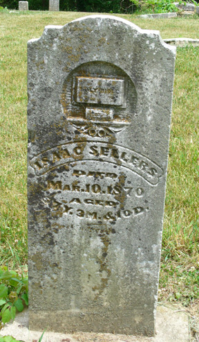 The stones above are also not listed, by some error, on the burial record below. The one on the left is the only difficult one to read, a ?? Lowder who died in 1855. The other three are quite legible: Isaac Sellers who died Mar. 10, 1870; Joseph Stover who died Aug. 18, 1851; and Sarah Young who died Jan. 23, 1869.