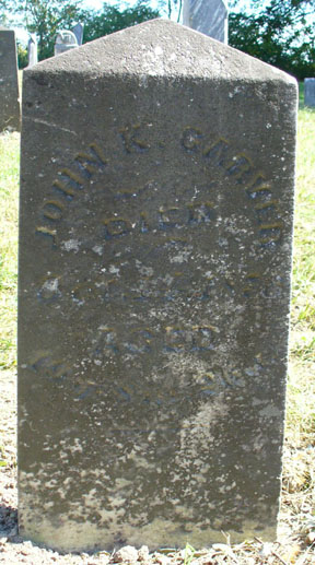 Patriarch of the Carver family, John, above, died 1871 when he was seventy-eight years old. This would make his birth year around 1793. There are thirty-five members of the Carver family buried at this pioneer and later settlers' cemetery.