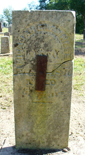 Among the earliest burials was a man of significance: Micajah Chamness, 1779-1840. Micajah and his large family helped settle Monroe and Pipe Creek townships. They arrived in 1831, shortly after the last Native Americans moved to reserves in the West. Mr. Chamness is the settler to first own the land that is now Alexandria. (For more on Micajah Chamness, go to the Monroe Township page.)
