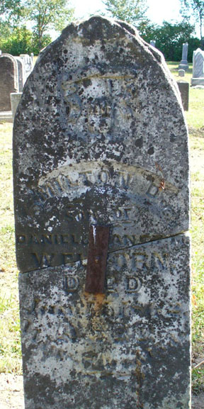 Pictured below, the columned monument for Daniel Welborn is flanked by the markers for two of his sons, Milton, right, who died at eleven years in 1862, and Hesikiea, left, who died in 1844. Hesikiea lived to be just two months and four days old. Undoubtedly, other children and infants are ensconced in unmarked graves along the Carver's aisles.