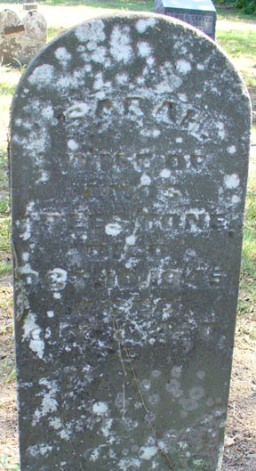 At right, Sarah Carver has one of the earliest stones in this cemetery. While the marker looks a bit worn, it still states that she died "July 3, 1848 aged 16ys 7m 11d." |