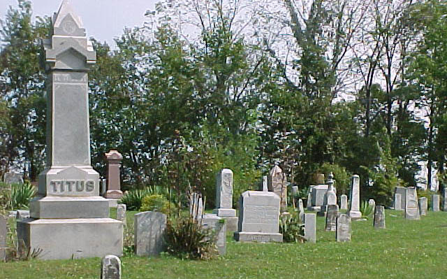 While the Titus family's monument dominates this scene, the Blakes, Brumfields, Hankins, Judds, Judges, Riggs, and Wiseharts--pioneer families who helped settled the southeast part of Madison County--are also well represented at the Collier Cemetery. |