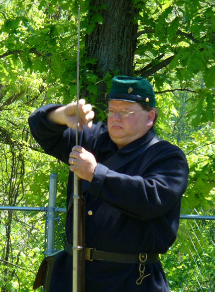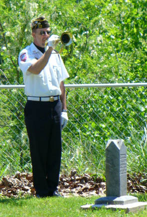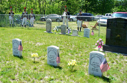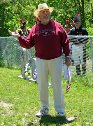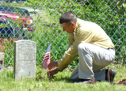 Russ Willis read each veteran's name, and a descendant placed a flag in front of the veteran's stone. A local Civil War re-enactor fired a round for each veteran from that conflict.