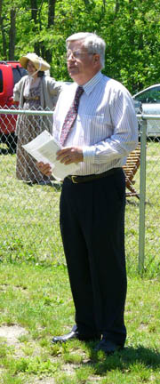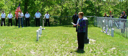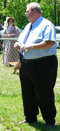 One of the wives, left, of an 1812 re-enactor came dressed in period costume also, and the wife of the Civil War re-enactor did likewise, adding color and authentic bits of history to the ceremonies. The turnout for this event was excellent with Cottrell descendants, county and township officials, and local residents as can be seen in the background.
