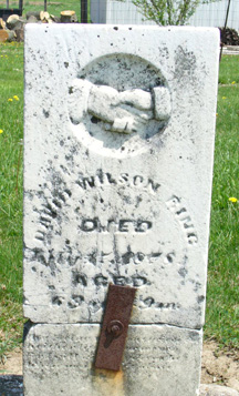The stone for William Smith is beautifully preserved even to the small inscribed poem or Bible verse at the bottom. These traditional additions were usually the first to disappear with the passage of time. William died March 17, 1856, at fifty-seven years. |