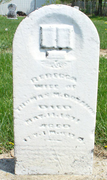 At left, "J. & C. Donahoo" lost another child in 1853, son Thomas who was only nineteen days old. At right, "Rebecca wife of Thomas M. Donahoo died May 14, 1871." She was "33 y. 1 m. and 17 ds." old. |