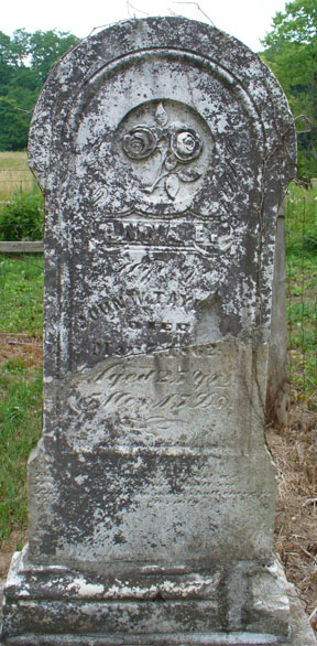 Ann Taylor's pretty stone looks to be from the same stone cutter as Sidney's and Jacob's above. Each is a tall, thick tablet, heavily incised with a rounded top and a wide variety of lettering fonts--an excellent example of mid Victorian funerary style. Ann was the wife of John W. Taylor; she died in 1862 at twenty-five years. The roses symbolize love for the departed. |