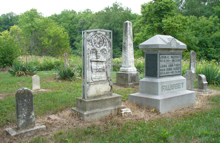 Above are stones for other Fausset family members: left to right, Jacob, Robert, son of John K., and Sidney.