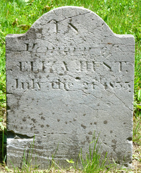 From the larger Hunt family, James Hunt, left, has the earliest legible (almost) grave marker. He died August 27, 1830; he was "2Y 7M 7D." (Thank you, early 20th century gravestone transcribers.) |