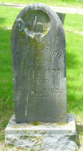 Among the early settlers to the Huntsville area of Fall Creek Township were the Hardins. John, 1801-1861, and Lucinda, left, can be found at the back of the cemetery on the knoll which holds the Williams first family. Brother Philip, right, is below in the newer section closer to CR 650S. The Hardins came from Pennsylvania, and Philip was a wagon-maker, an indispensable craftsman in a farming community. Philip and wife Mary Alfonte's children were Lou, Kate, Maggie, Ben, Charles, John, and Evaline. |