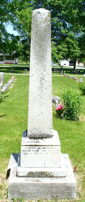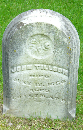 Other first land owners represented by markers are left, P.R. Maul who died in 1867 at fifty-eight years; middle, John Tillson, who has a very readable stone; and right, veteran John Swain who died in 1857.