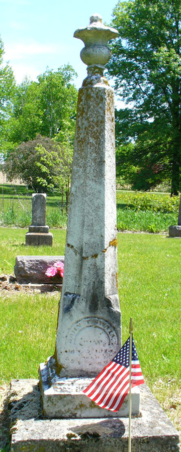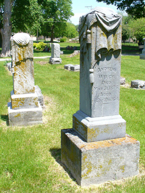 This view is from a newer section of the Huntsville Cemetery, looking south into the oldest section. The earliest stones are from the 1840s. William Williams, who died in 1847, is one of the early settlers on this high knoll. |