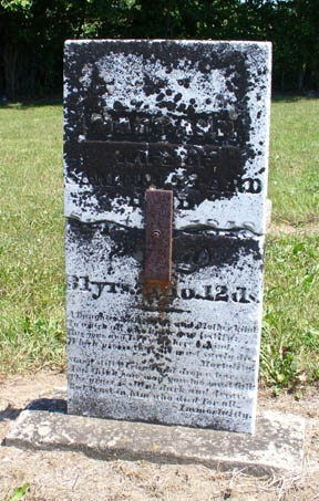 Life on a frontier as unthreatening as the New Purchase still exacted a toll on the wives and mothers of pioneering families. Pregnancy and child birth were very dangerous in this era before medical knowledge. Above are two of the earliest stones both for wives named Mary: on the left the wife of Christopher Tanner and in the middle the wife of Samuel Eppard. Mary Tanner died in August of 1848 at forty-two years of age; Mary Eppard died the next month at age thirty-one. On the right Amanda, wife of Chancy Vermillion, died in 1861 at only twenty-two years old.