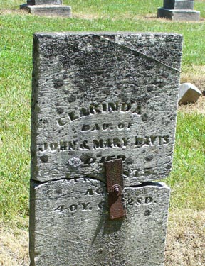 Among the other early Adams Township settlers buried at the McAllister is John Davis, 1800-1886, whom Samuel Harden, in his book The Pioneer, refers to as "one of the grand old men, whose memory we all revere." John and Mary's daughter Clarinda died in 1875.