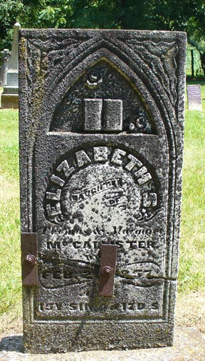Female members of the McAllister family with similar tablet-type grave markers are Catherine, left, who died "Aug. 1, 1850," and Elizabeth, right, who died in 1857. |