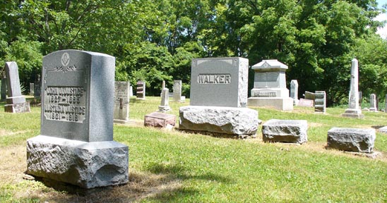 Early 20th century Madison County historian Glen Walker was the first to make gravestone transcriptions of several of the pioneer cemeteries in the southern townships. The McAllister was one of those he recorded, an arduous task considering the number of stones and the conditions of some of the graveyards at that time. Mr. Walker compiled the original list of gravestone data for the McAllister Cemetery in 1932 and revised it in 1962. Mr. Walker turned over his records to the newly formed Cemetery Committee of the Madison County Historical Society in 1967. Glen Walker's efforts remain invaluable.
