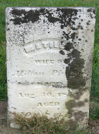 These stones for two young wives speak of the high death toll for females during 19th century. At left, Matilda Philips died in 1858 when she was thirty; at right, Isabella Burton died in 1872 when she was only twenty-four. |
