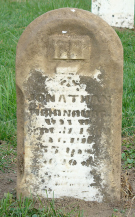 The Pence family were of the same generation as the Fountains and Thornburgs. At left, "Elizabeth, wife of Joseph Pence died Sept. 14, 1861 aged 45y 6m 20d." At right, a Pence child, Jonathan, died in 1855. Settlers during this time period were tight-knit. Most probably, the Pences, Fountains, and Thornburgs knew one another, helped each other survive in this forested wilderness, and may have even migrated to Richland Township together. |