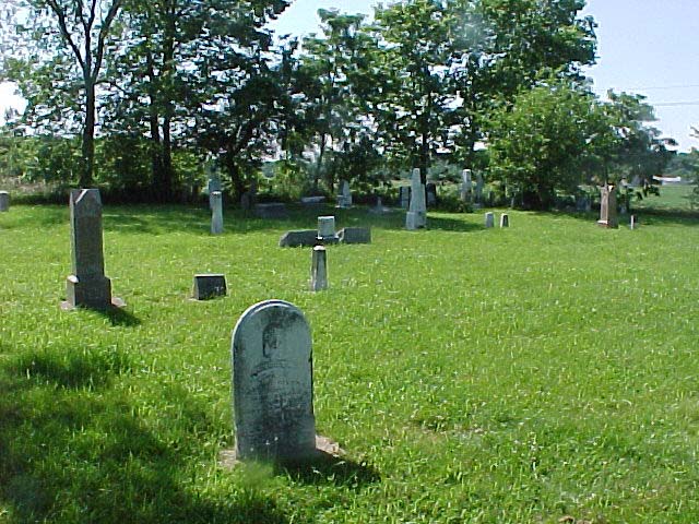 Another early family is that of the Whitecottons. George, 1809-1866, wife Angeline Dyson, 1821-1872, and son Sinclair are buried at this location. Relative Moses was one of the first justices of the peace in the Fall Creek Township community, and he wrote all of his court docket and correspondence in rhyme (!). (For more on this, go to the Fall Creek Township history page.)