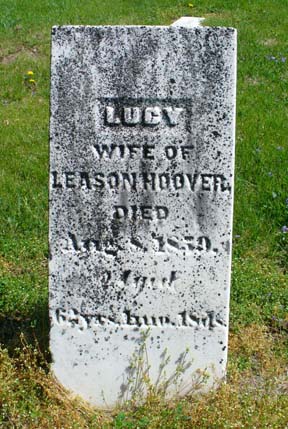 Related by marriage are the Hoovers. According to Kathleen Schwartzman, family genealogist, the head of the Madison County Hoovers, Charles Leason Hoover, was born in March of 1796 in Rowan County, North Carolina, into a Quaker family that can be traced back to the Yadkin River area of Daniel Boone and further into Maryland. The extended Hoover family first moved to the Richmond area in Wayne County, Indiana, in 1806. This is where Charles grew up and married Lucy Webb. Charles and Lucy eventually had fourteen children, three of whom died in infancy in Wayne County. Charles and Lucy moved their family to Madison County and purchased land in Jackson Township on the north bank of Pipe Creek. During the Civil War, five of Jacob and Lucy's sons--John, James, Mark, Emsley, and Enos--served in the army of the North. After the war, sons Emsley and Enos are shown as owning Jackson Township land on the 1876 plat map. Another son Mark Reeves Hoover married Sarah Ann Neese, daughter of Jacob Neese, discussed above. The father Charles Leason Hoover died January 13, 1861. His wife Lucy, born in 1797, predeceased him in 1859.