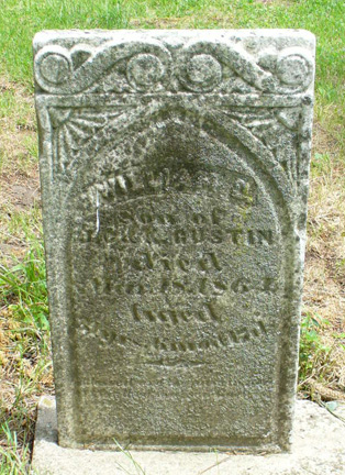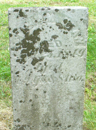 Clearly marked "Cynthia Ann," the stone at left is for William Benefiel's wife whose father debated with Benjamin Franklin. Cynthia's maiden name was Kidwell, she and William had eight children, and she died twenty years after arriving in Pipe Creek Township, Madison County, Indiana. |