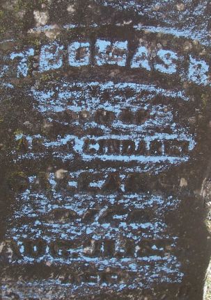 And speaking of genealogy, a researcher has chalked this blackened stone and found that Rebecca was the wife of John Moore. Hopefully the genealogist could also detect that she was sixty-eight when she died "Jan. 7, 1874." |