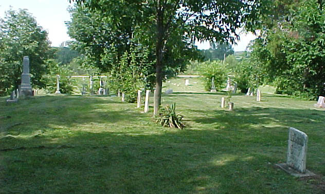 As the picture above indicates, viewing the Prewett Cemetry from CR 700N, the old section at the top of the hill may well be missed. However, there are more pioneer and early settlers' graves in the shade of the trees than newer burials near the pavement.