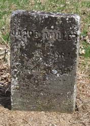 Relative Jacob Miller, right, may be one of the oldest to be buried here. He was eighty-nine when he died in 1864. This makes his birth year around 1775, the beginnings of America's revolution. Jacob was born during one war and died in the period of a later one, the Civil War. What history his life spanned! |