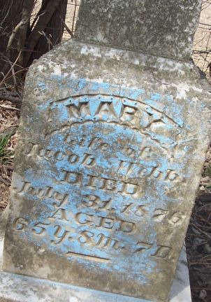 While the Webb family--Jacob, Jasper, Minor, and Theodore--are recorded as first land owners in various townships, the family burial site was evidently at the Prewett here in Pipe Creek Township. There are at least twenty-four members of the 19th century Webb family installed here. At right Theodore was fifty-nine when he died in 1860. His wife Rebecca is in the middle. Another patriarch of the family was Jacob, husband of Mary, left. Webb descendants still reside in Madison County.