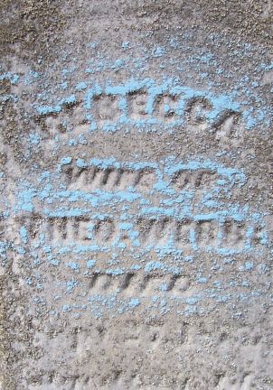 Obviously from the same stone cutter, Rebecca's stone is located near her daughter's. Rebecca died "Oct. 17, 1863 aged 52 Y. 9 M." |