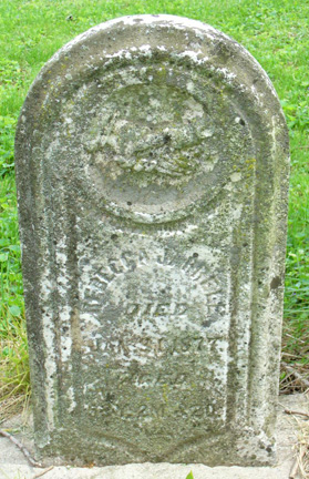 In the south east corner is a small section for the Gustins. Omitted from the burial list by some oversight, Kesia's stone, left, records that she died June of 1867. Mary's column, middle, and William's tablet, right, are duly noted. The Gustins were originally from southwest Ohio, specifically Warren County, and while these three lived in Pipe Creek Township, other Gustins homesteaded Union and Adams townships as well as parts of Henry County on Madison's southern border. (See Otterbein, Walker, Keesling, and West Maplewood for more Gustins.)