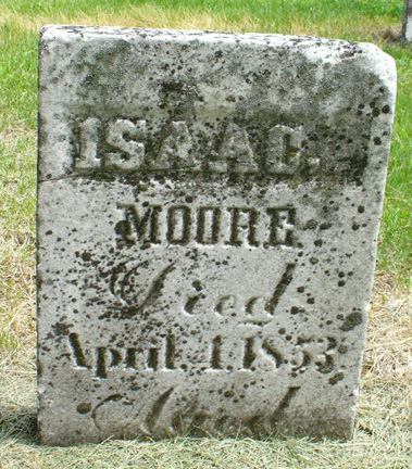 Sarah's well preserved stone is left, and husband Isaac's is middle. In the same section, relative William Moore died in 1872 when sixty-four years of age.