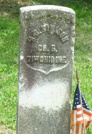 Civil War soldiers abound in Madison County, too. Among the veterans buried at the Prewett are Nathaniel Davis, far left, from the Indiana Infantry and N.B. Simison, left, from the Ohio Infantry. For Veterans' Day, America flags are placed at the cemeteries by the Veterans Administration. |