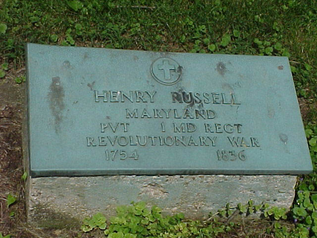 | Henry Russell, Revolutionary War soldier, was at Valley Forge in 1777. He was born in 1754 and served as a private in Maryland's 1st Regiment. He died in 1836 in Chesterfield at eighty-two years. Henry is listed in the DAR Index of Revolutionary Patriots. Mr. Russell was one of the early Union Township pioneers. Henry's son, also named Henry, was a class leader in the Otterbein Church. This veteran's daughter Nancy was the wife of Brazleton Noland. Henry Russell's grave retains the memorial plaque placed there by the Daughters of the American Revolution. The Kikthawenund Chapter of the DAR had historian Edward J. Ronsheim, Sr., speak at the dedication ceremonies: "Only by preserving history are we fit to make it. These people braved the dangers of the frontier to establish that which we enjoy. Surely they earned from us a right to believe that the stones which mark their lives and deaths will be held as a sacred trust and historical tie between the past, today and the future."
