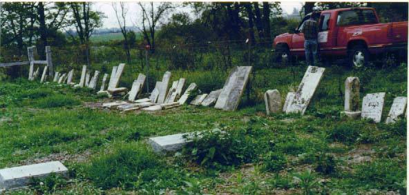 |  | Left and Above:The Weddington had been unfenced and in the middle of a cow pasture when rediscovered in the 1990s. The cows liked the cool shade of the trees and rubbing against the taller grave markers. Consequently, the damage to the stones was enormous. Some stones were themselves buried in the earth.