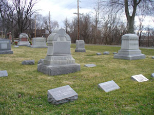 West Maplewood today is a beautiful repository of loved ones and a stone library of architectural styles. From the simple rectangular slabs of the early 1800s, through the ornately decorated carvings of the Victorians, to the stone blocks of the early 20th century, West Maplewood provides a walk through the fashions and culture of the past. |