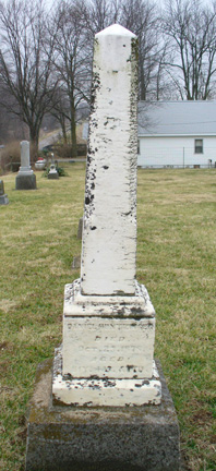 Among the prominent families in this area were the Fishers. Charles Fisher, whose tall stone is pictured at right, lived to be ninety-three, came to the area in 1820 with his father Benjamin (see Stony Creek Township page), remembered the pioneer existence very well, and was interviewed for an article entitled "Early Settlers," which appeared in a local Lapel newspaper of 1903. The pioneer way of living in the Madison County wilderness of the early 1800s, which he relates, is a stark contrast to the lifestyle of the 21st century: